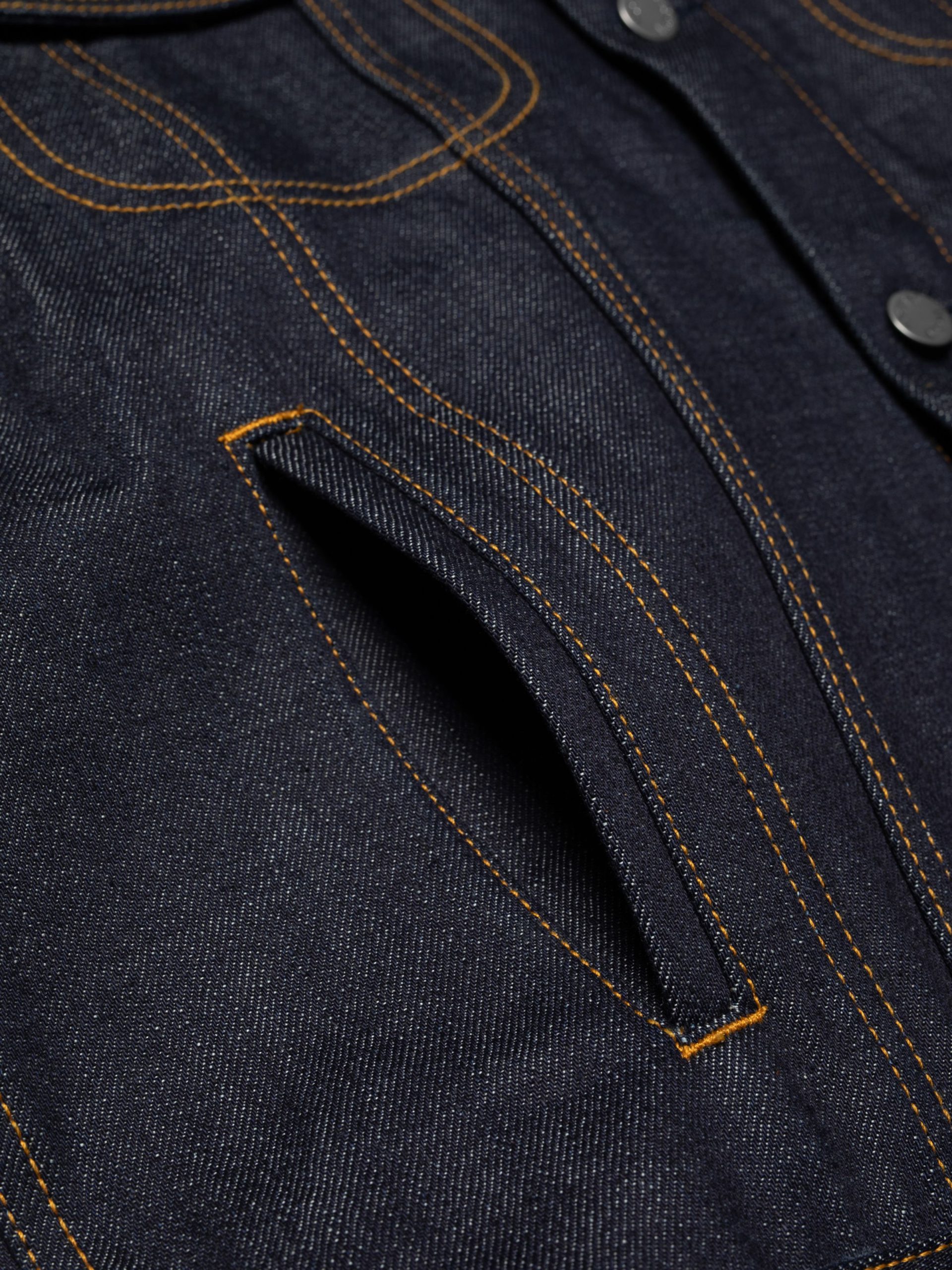Danny, our regular fit denim jacket crafted from the extraordinary Dry Ace Selvage. Made from organic cotton.