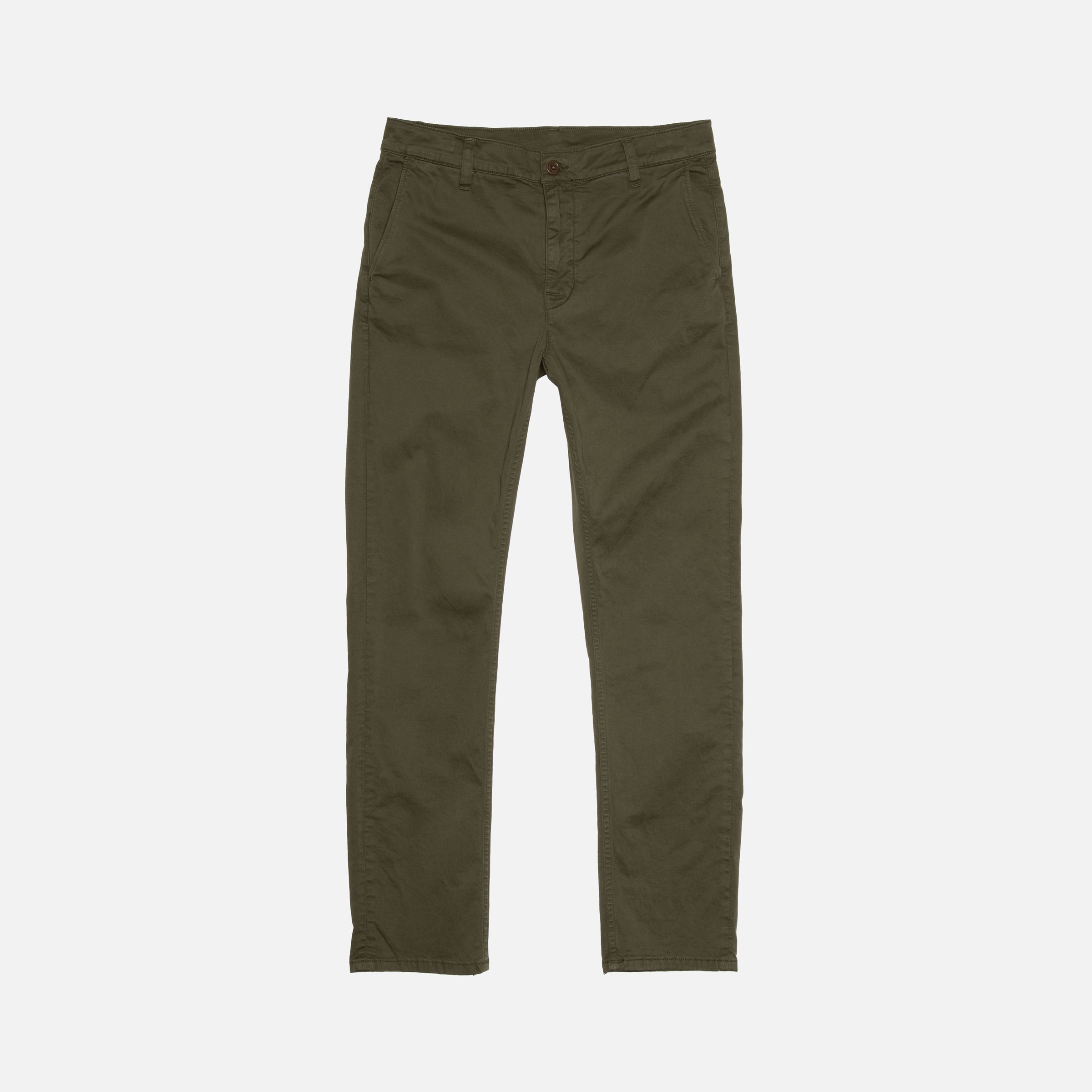 Slim fit four-pocket chino made in a clean organic comfort stretch twill. Fit and making considered it is the contemporary slim-fit chino perfected.