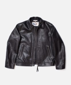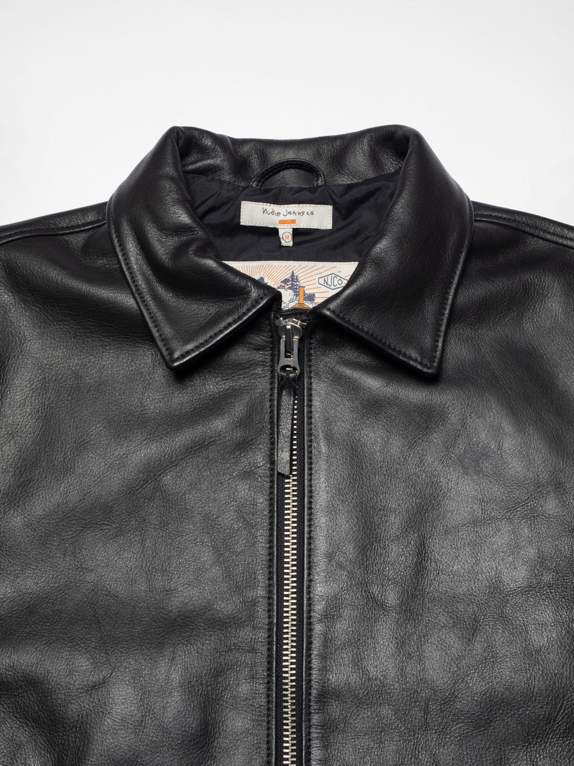 Regular fit leather jacket with retro-inspired silhouette crafted in sturdy buffalo leather.