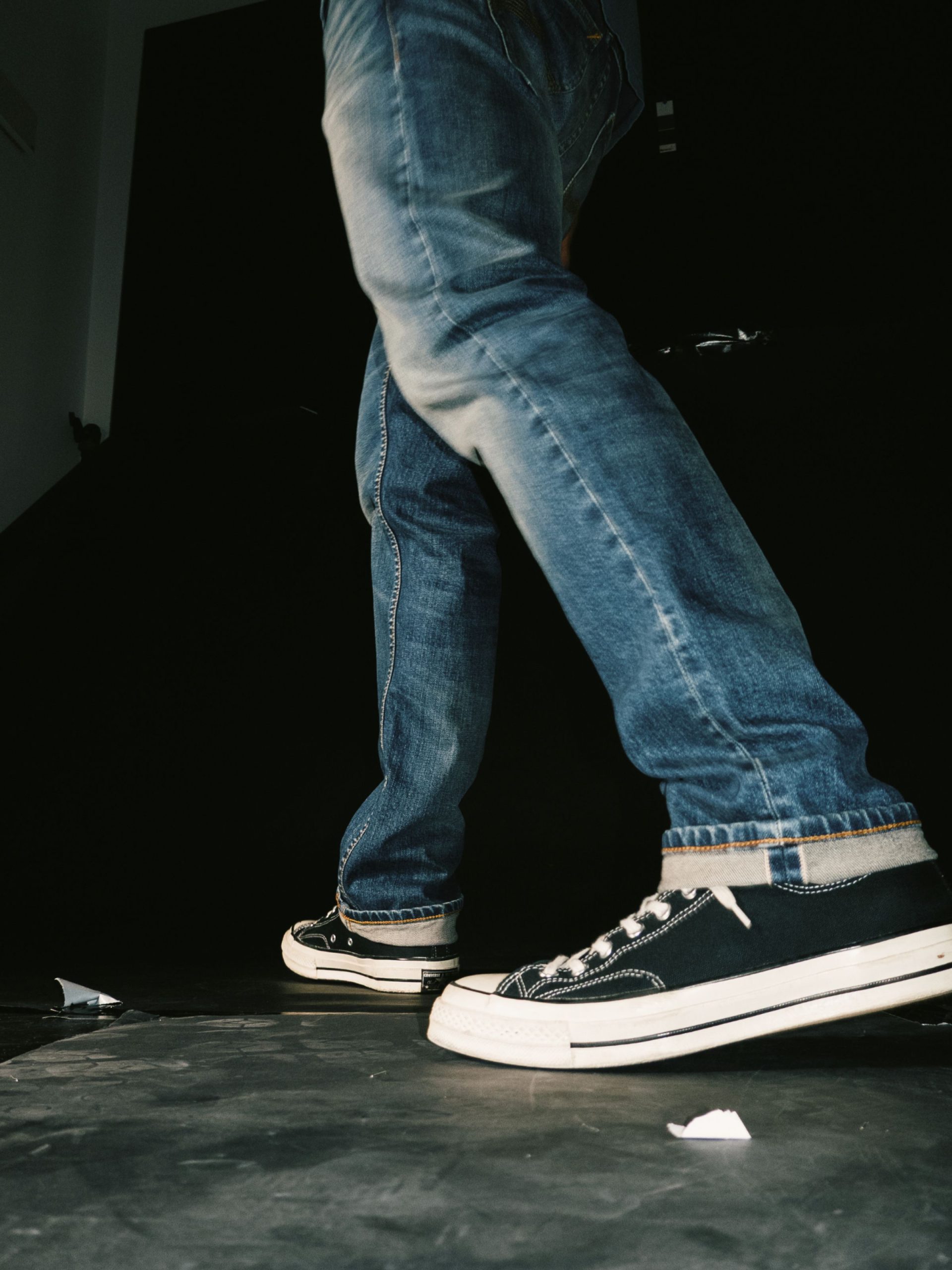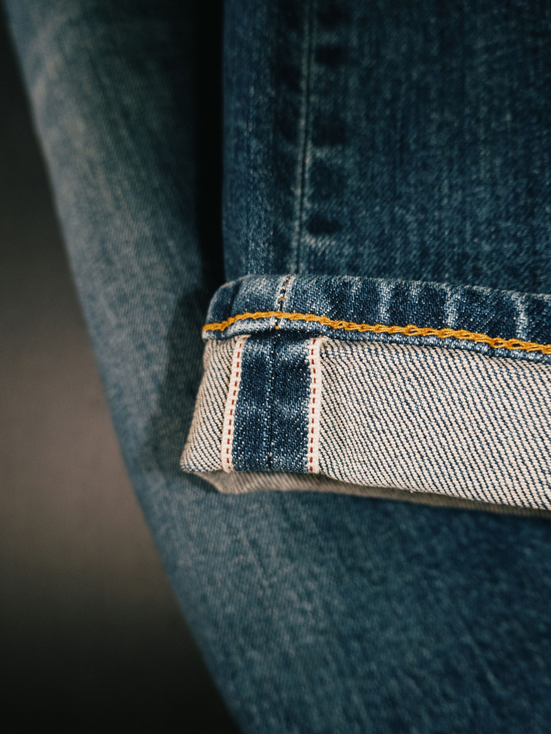 Scary limited.Just 256 pcs online. Slim-fit jeans with a straight leg, crafted from selvage denim by the renowned Candiani mill in Italy. Washed to deliver an authentically worn-in look, these jeans highlight expert denim wash craftsmanship. Made from ring-spun denim with a subtle, yet striking slub texture, they offer beautiful textural contrasts. Darker areas feature vertical streaks, while abraded highlights reveal crisp diagonal twill lines. Sharp wear marks further enhance the natural, worn-in appearance, adding depth and character to these washed selvage jeans.rn
