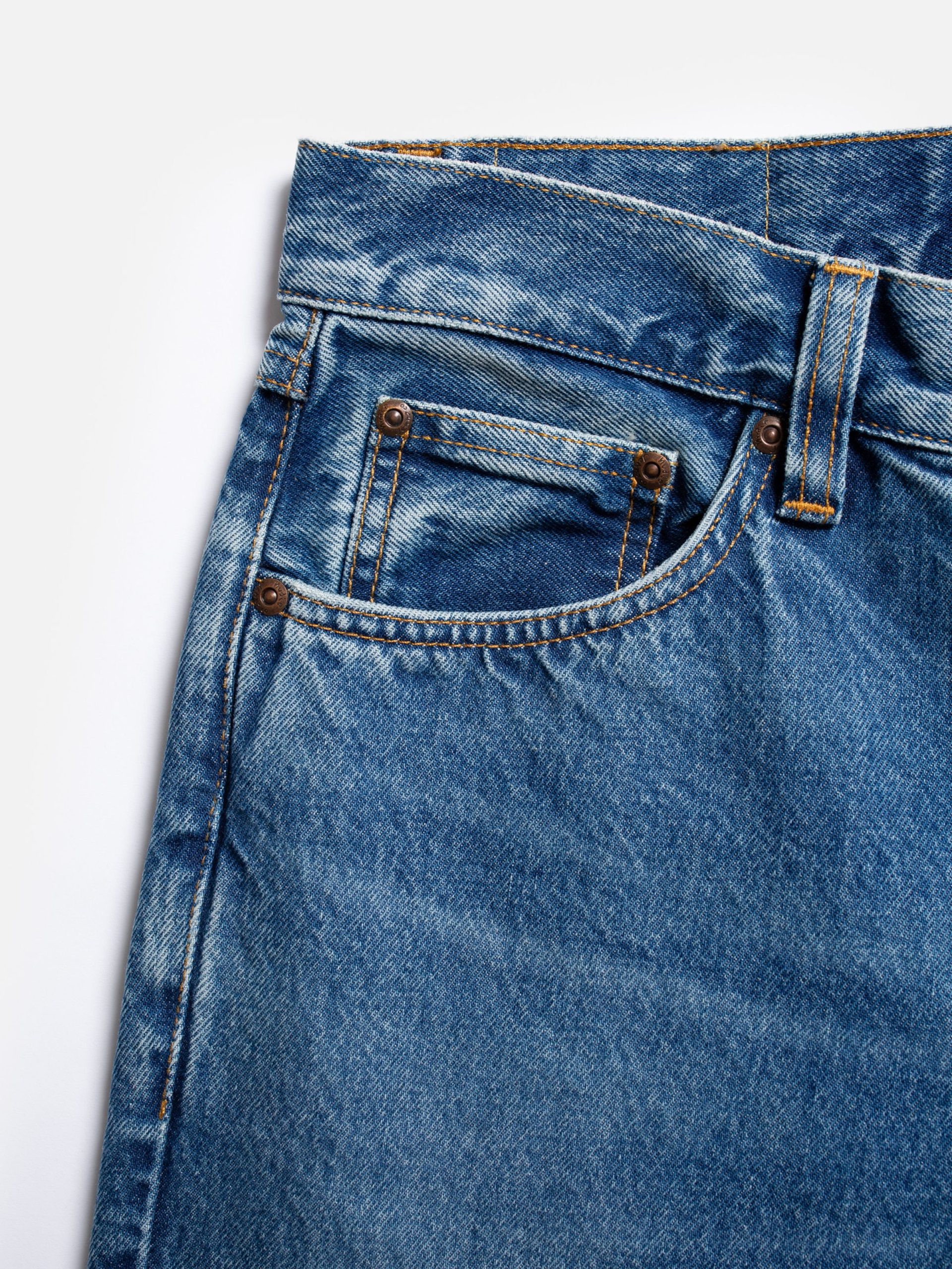 Regular fit jeans with a straight leg in a mid-blue wash with subtle contrasts. Made from organic cotton.