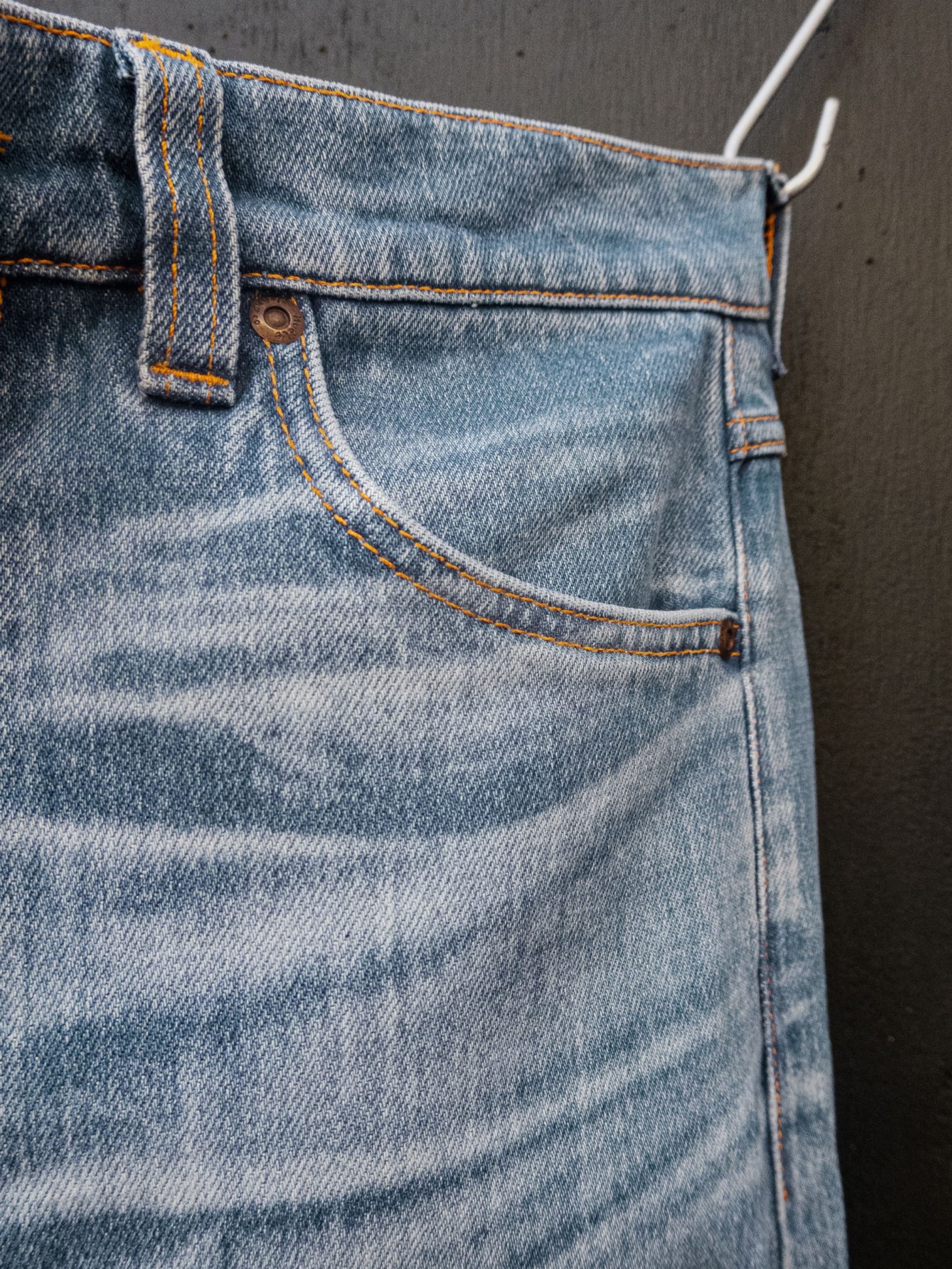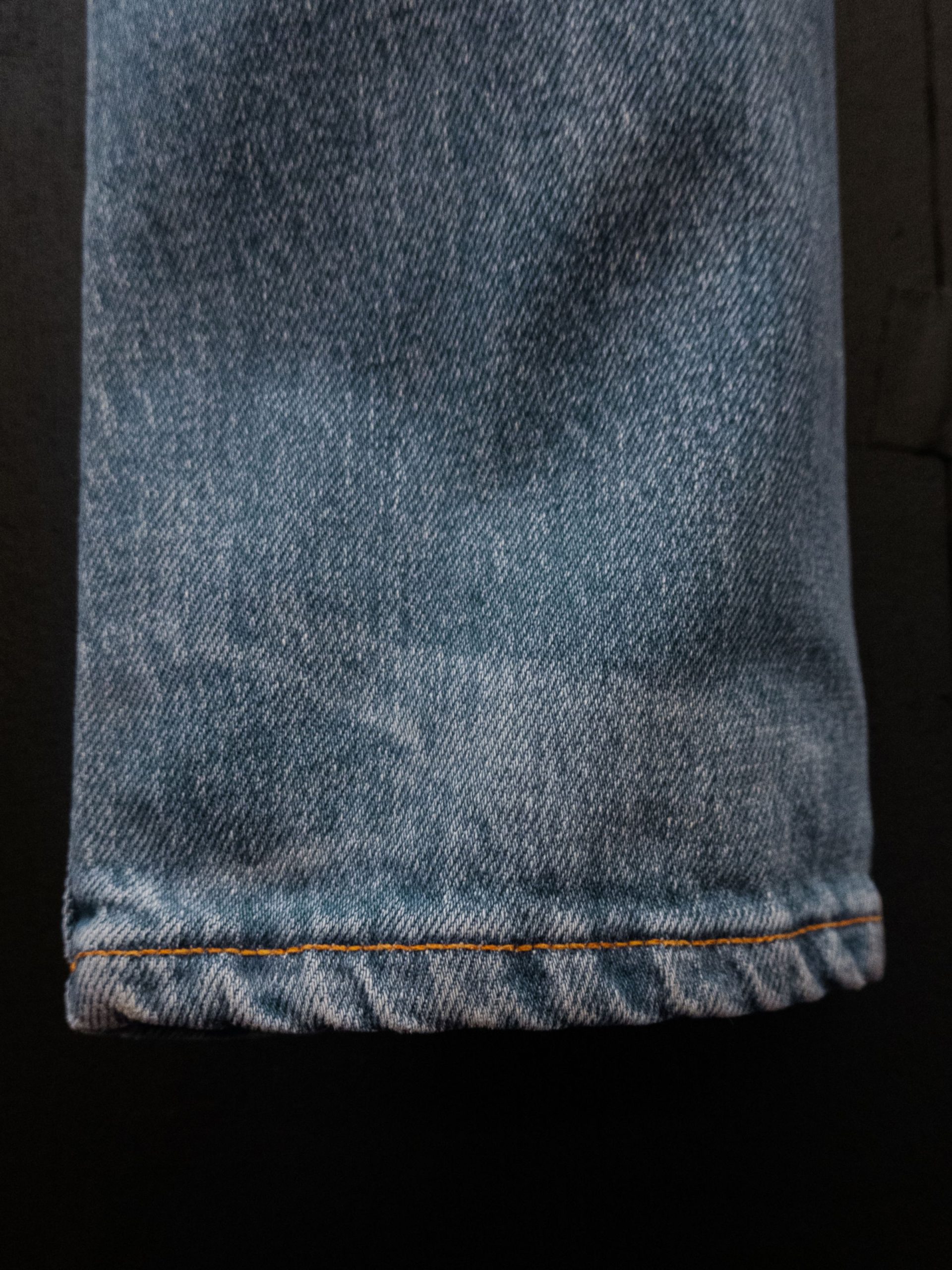 The Lean Dean Hidden Tracks faithfully replicate the fades and wear marks of an original pair of worn-in Nudie Jeans. Using a precise method, every detail of the original has been captured and recreated on a new pair of jeans.