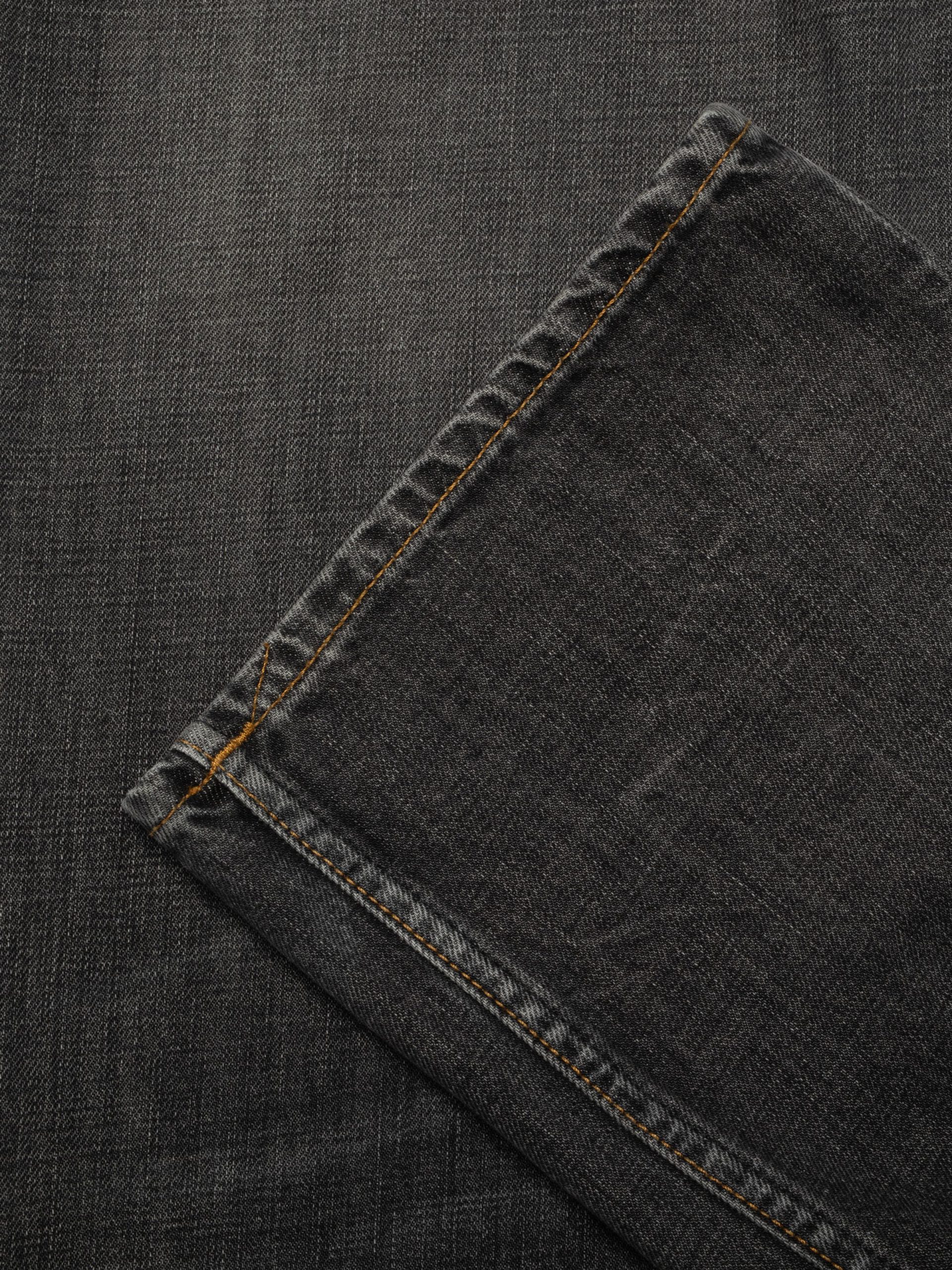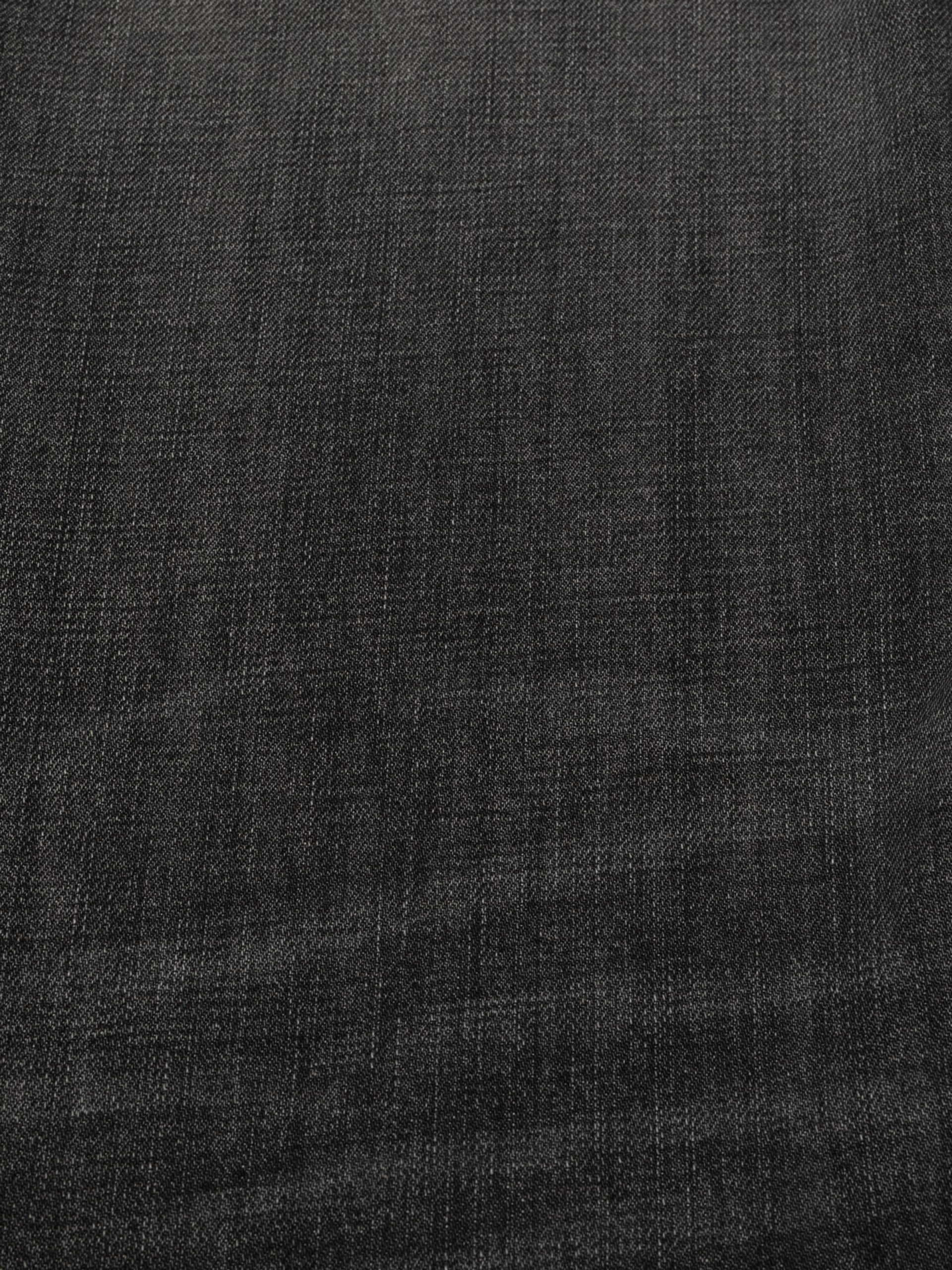 High-waist, loose-fit jeans, featuring a bold grey wash and contrasting details. Crafted from black denim with a rugged crosshatch texture, these jeans highlight rich highs and lows, accentuated by a pronounced slub character. Abrasions and sharp wear marks deepen their unique, bold, and monochromatic look.