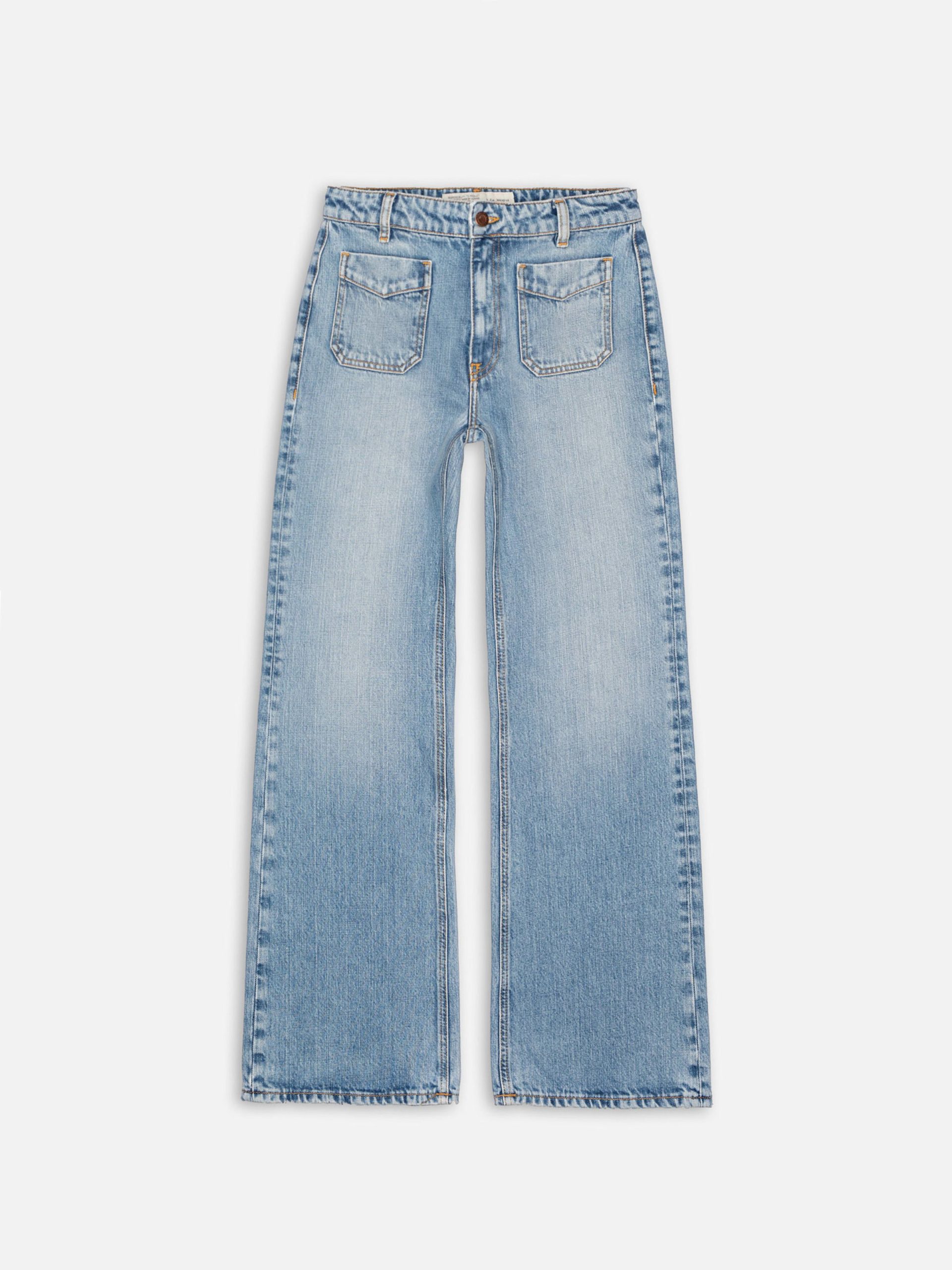 Our western-style pant Holly with an updated fit —a yokeless regular fit with a flared leg and a mid waist. Holly, crafted from streaky denim, these Holly Denim Pants display a striking texture with pronounced vertical slubs of varying length and thickness.