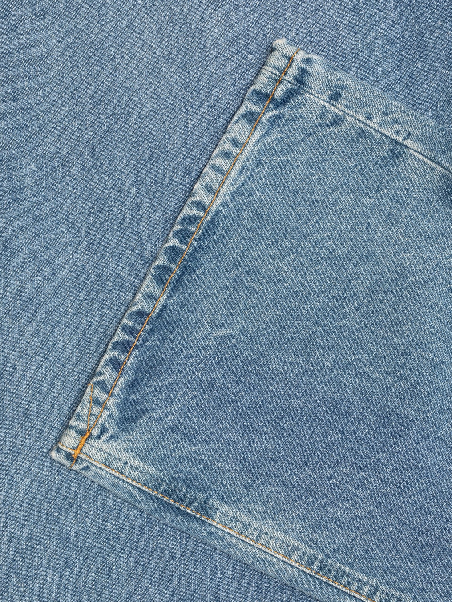 Loose-fit jeans with a wide leg and low waist in a light blue wash with an authentic worn look. Subtle streakiness, crosshatch, and muted marble textures add depth, enhancing the vintage denim feel. Made from organic cotton.